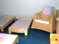 La stanza azzurra per i 'medi' (16 baby da 13 a 20 mesi) e quella gialla per i medi-grandi (17 dai 21 ai 36 mesi), anche quella verde è per i medi-grandi.